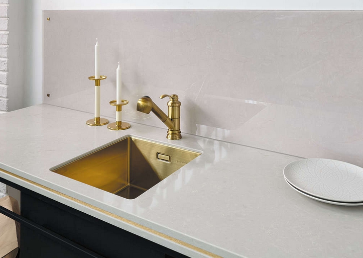 вровень со столешницей — создается ощущение бесшовного пространства, а если мойка сделана из того же материала, то и единого дизайна;
