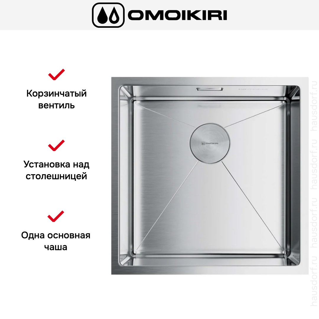 Врезная мойка Omoikiri — отличный выбор для тех, кто хочет создать гармоничное кухонное пространство с полностью вписывающейся в него сантехникой. Преимущество такой конструкции — плотное прилегание к столешнице, так как вырез подбирается индивидуально под габариты модели. Под стыки не попадает вода, поэтому срок службы значительно увеличивается, пользоваться ей удобно и приятно. Данная модель имеет стандартную форму, поэтому подходит большинству пользователей. Устанавливается вровень со столешницей, благодаря чему не остается стыков, в которых копились бы загрязнения. Устанавливается под столешницу, благодаря чему не остается стыков, в которых копились бы загрязнения, а также увеличивается рабочая глубина. Устанавливается над столешницей: это самый простой способ монтажа, зачастую с ним можно справиться даже без специалистов, главное — правильно рассчитать размеры ниши.
