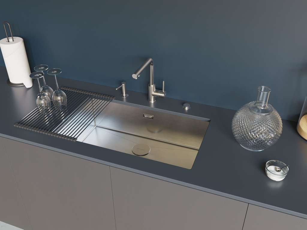 Установка под столешницу заключается в том, что мойку устанавливают таким образом, чтобы бортики не были видны на поверхности, а уровень бортиков находился ниже уровня столешницы.