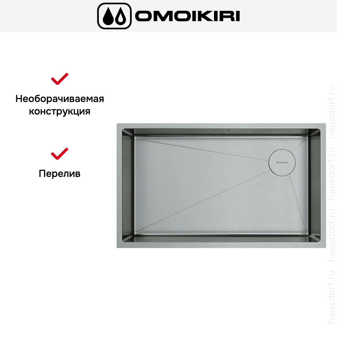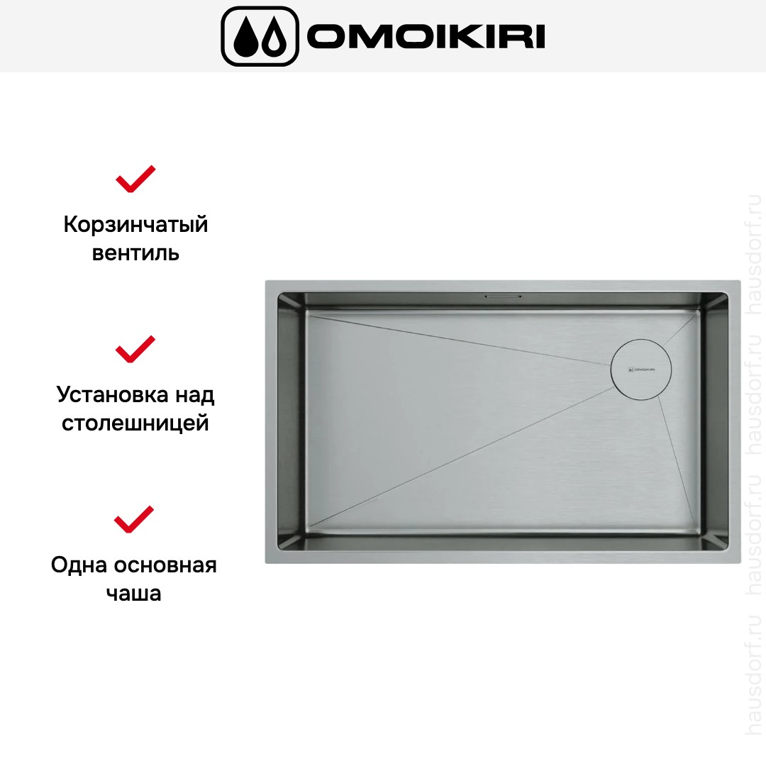 Обратите внимание на дизайнерские отличия мойки Омойкири, которые помогут в создании идеальной кухни в вашем доме. Она выполнена в цвете нержавеющая сталь. Основной материал — нержавеющая сталь, он гарантирует надежность и долгие годы службы без повреждений.