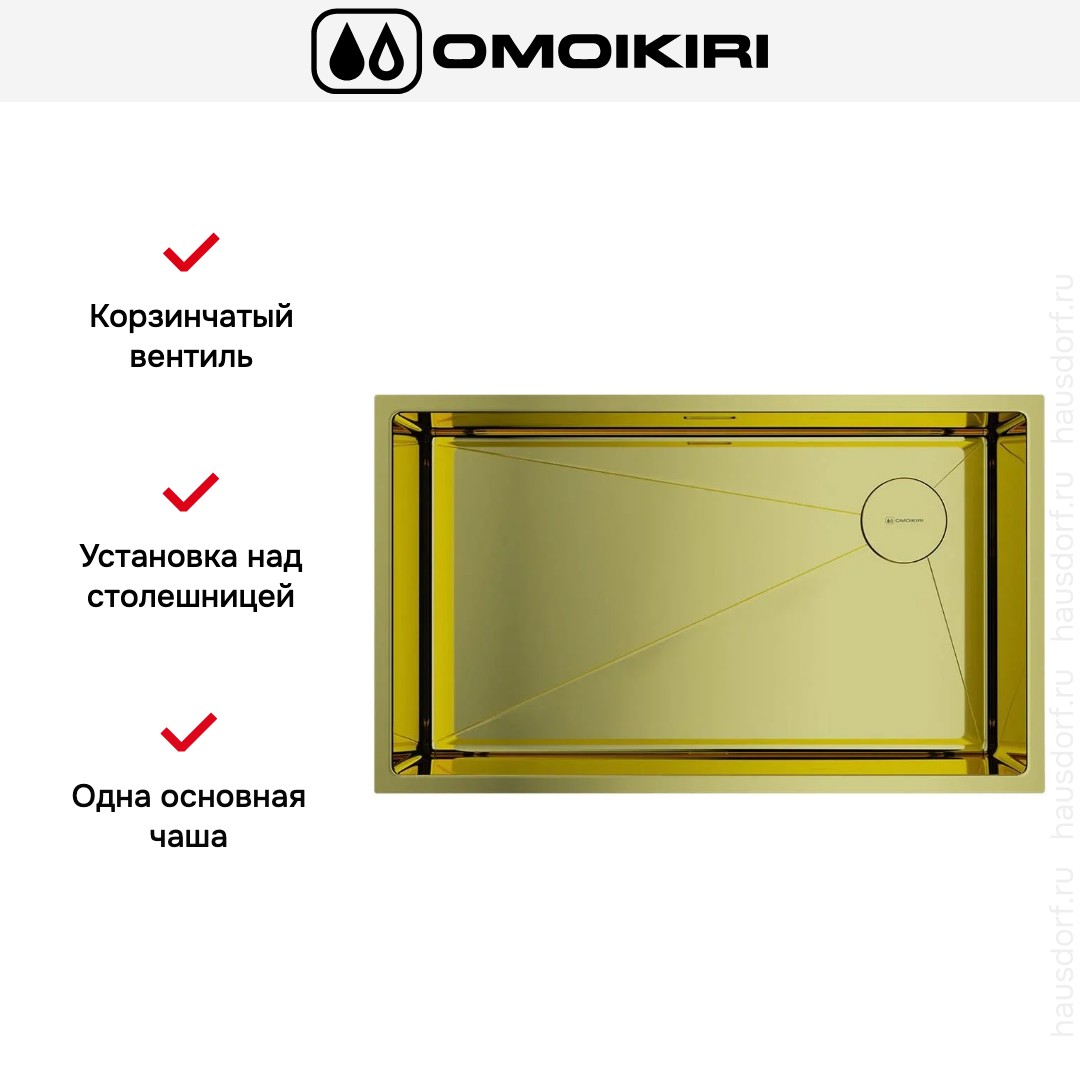 Обратите внимание на дизайнерские отличия мойки Омойкири, которые помогут в создании идеальной кухни в вашем доме. Она выполнена в цвете светлое золото. Основной материал — нержавеющая сталь, он гарантирует надежность и долгие годы службы без повреждений.