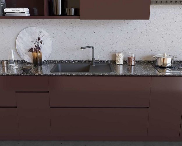 вровень со столешницей — создается ощущение бесшовного пространства, а если мойка сделана из того же материала, то и единого дизайна;