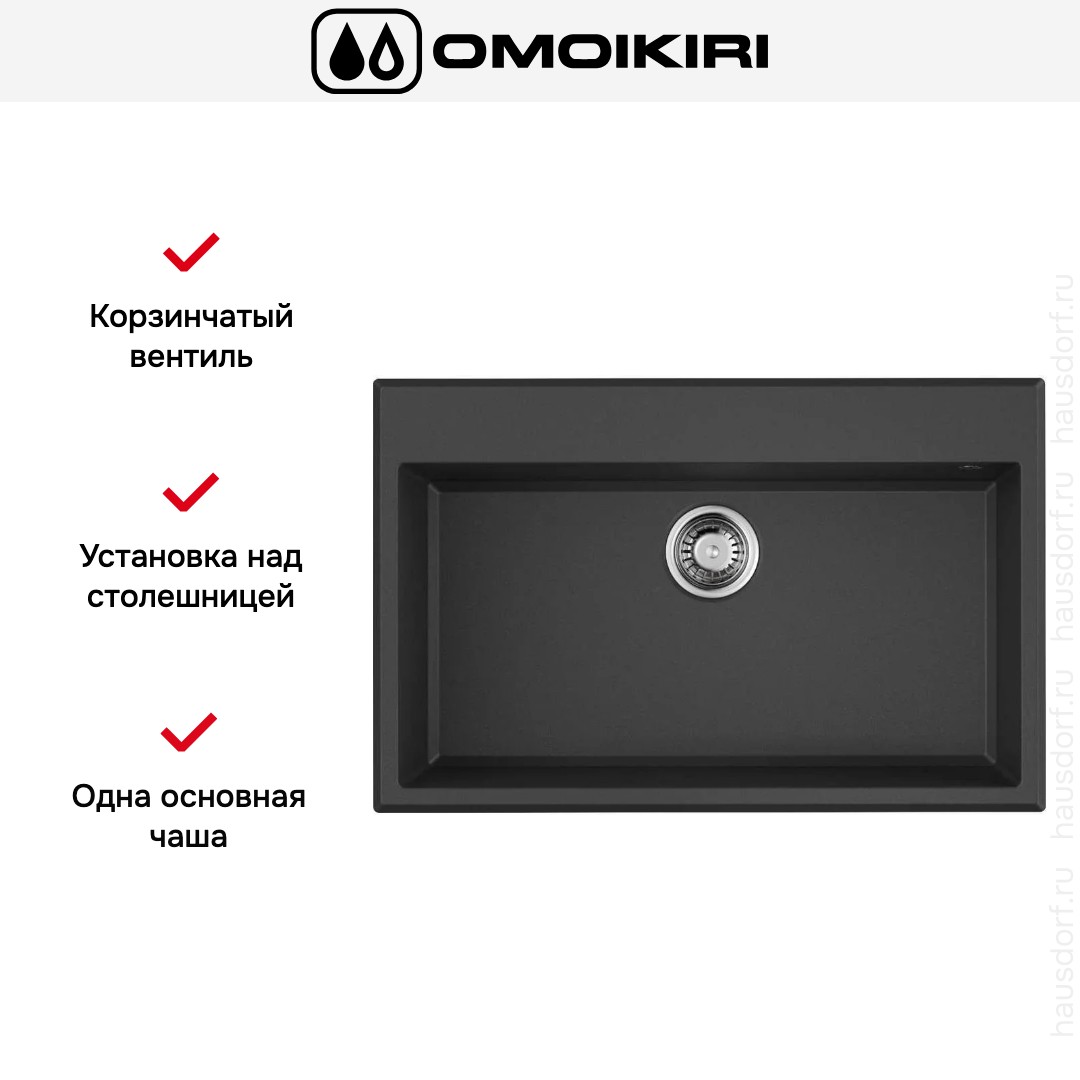 Накладная мойка Omoikiri — отличный выбор для тех, кто хочет создать гармоничное пространство с удобной сантехникой. простой в установке. Преимущество такой конструкции: легко подобрать практически к любой кухне и не придется демонтировать вместе с тумбой при ремонте или перестановке остальной мебели. Данная модель имеет стандартную форму, поэтому подходит большинству пользователей. Устанавливается над столешницей: это самый простой способ монтажа, зачастую с ним можно справиться даже без специалистов, главное — правильно рассчитать размеры ниши.