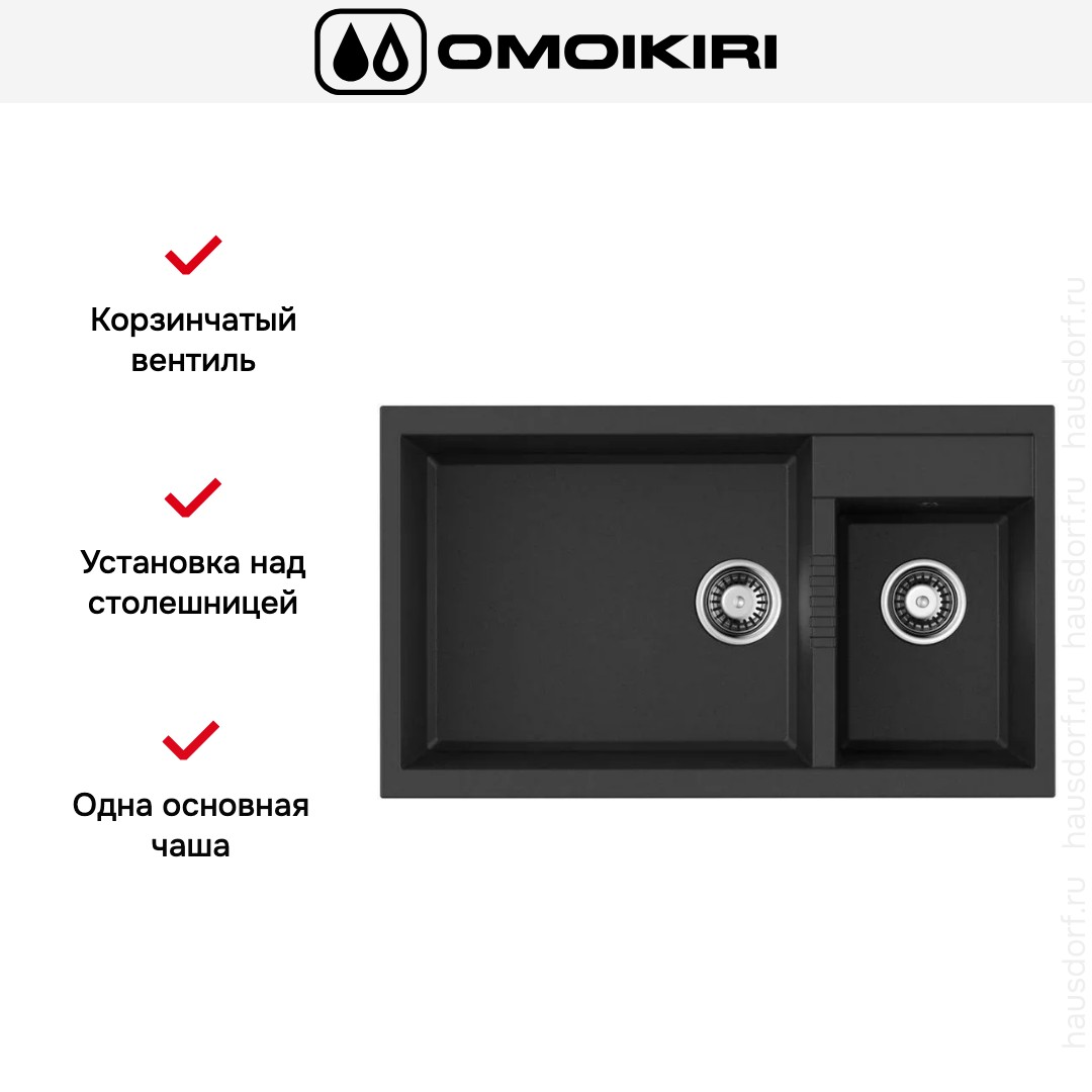 Накладная мойка Omoikiri — отличный выбор для тех, кто хочет создать гармоничное пространство с удобной сантехникой. простой в установке. Преимущество такой конструкции: легко подобрать практически к любой кухне и не придется демонтировать вместе с тумбой при ремонте или перестановке остальной мебели. Данная модель имеет стандартную форму, поэтому подходит большинству пользователей. Устанавливается над столешницей: это самый простой способ монтажа, зачастую с ним можно справиться даже без специалистов, главное — правильно рассчитать размеры ниши.