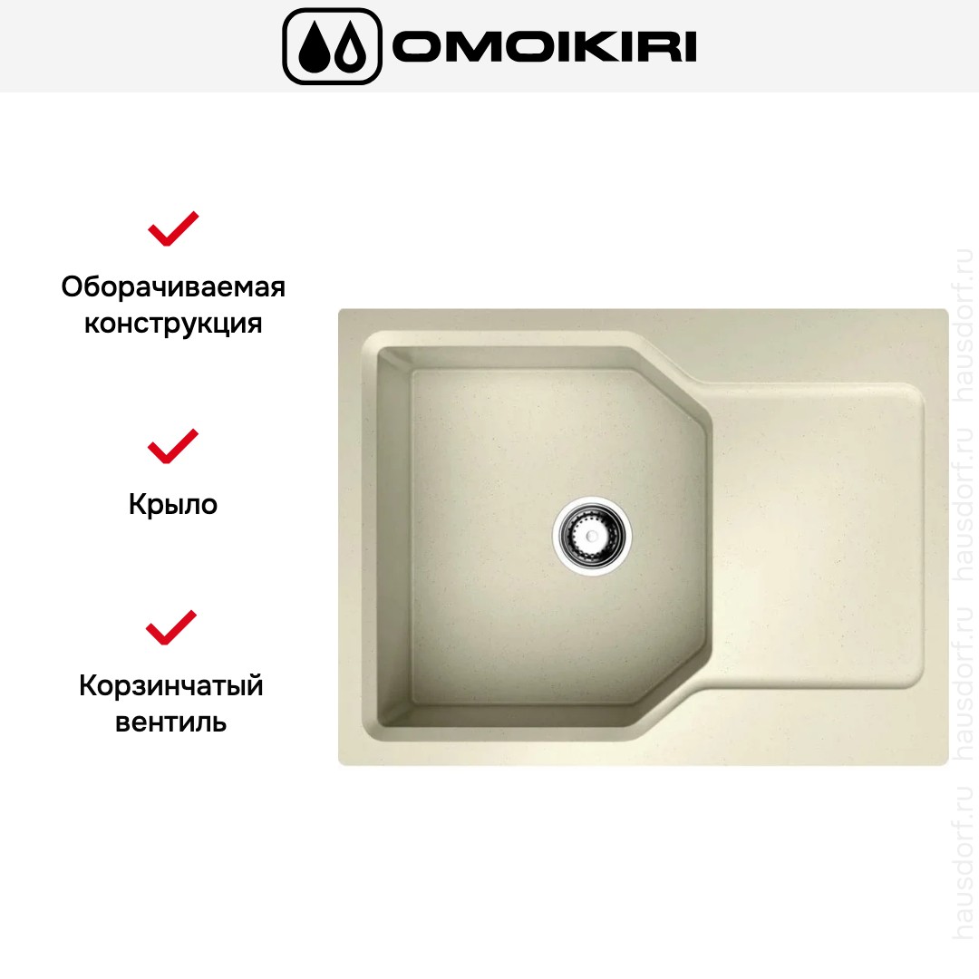 Обратите внимание на дизайнерские отличия мойки Омойкири, которые помогут в создании идеальной кухни в вашем доме. Она выполнена в цвете ваниль. Крыло, расположенное слева или справа, является дополнительным рабочим пространством, на котором можно сушить посуду, разделывать мясо и нарезать овощи.