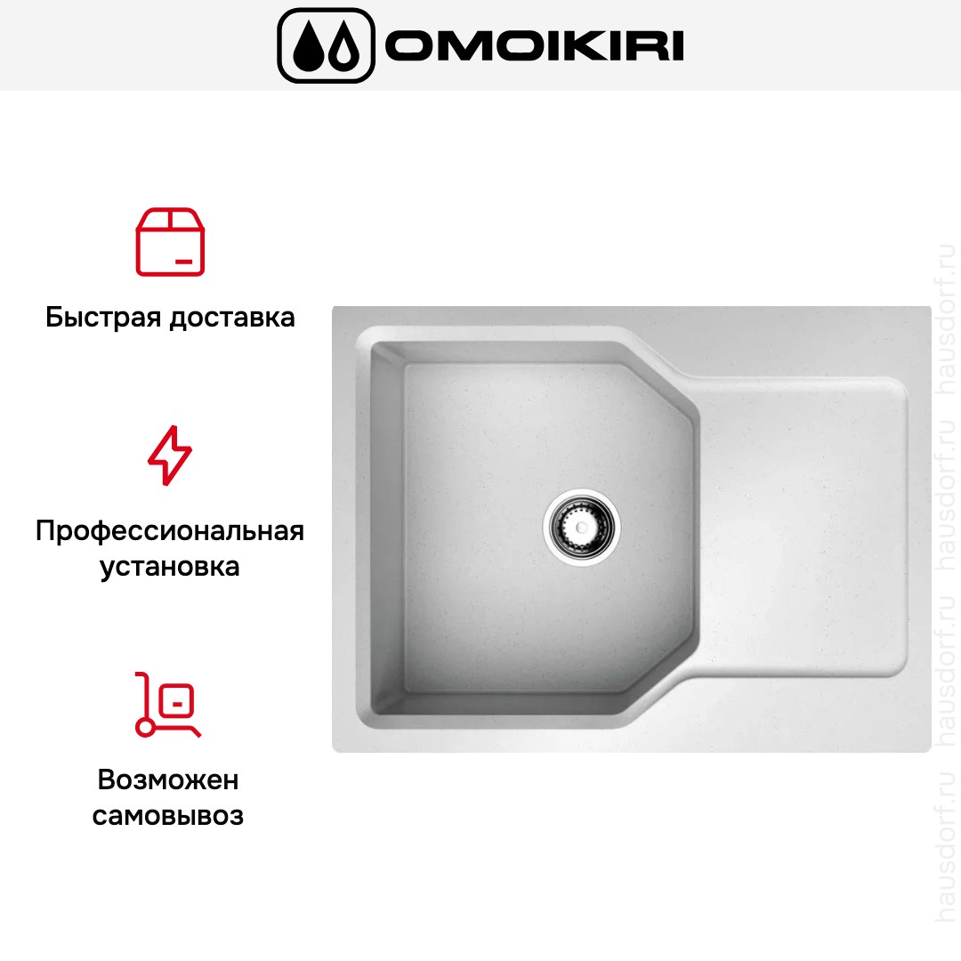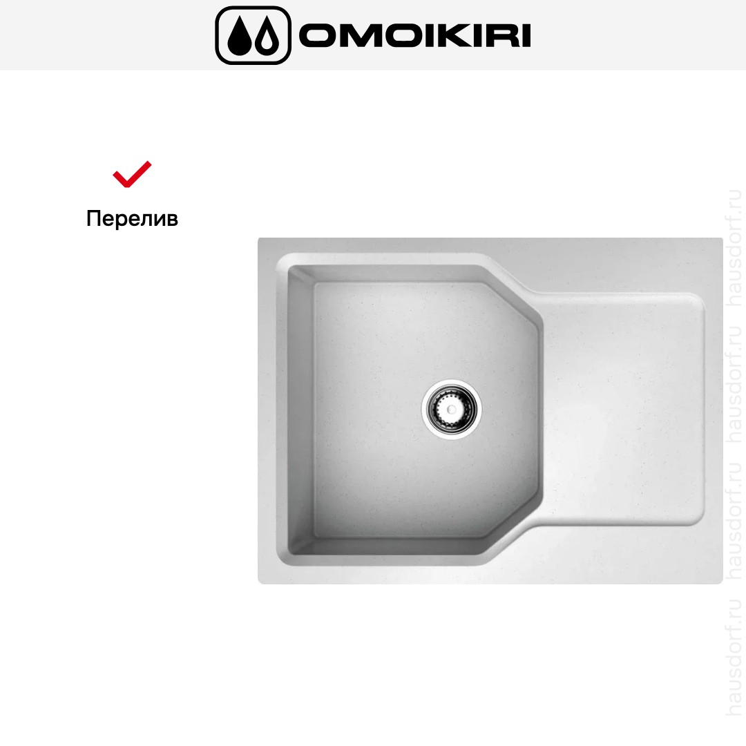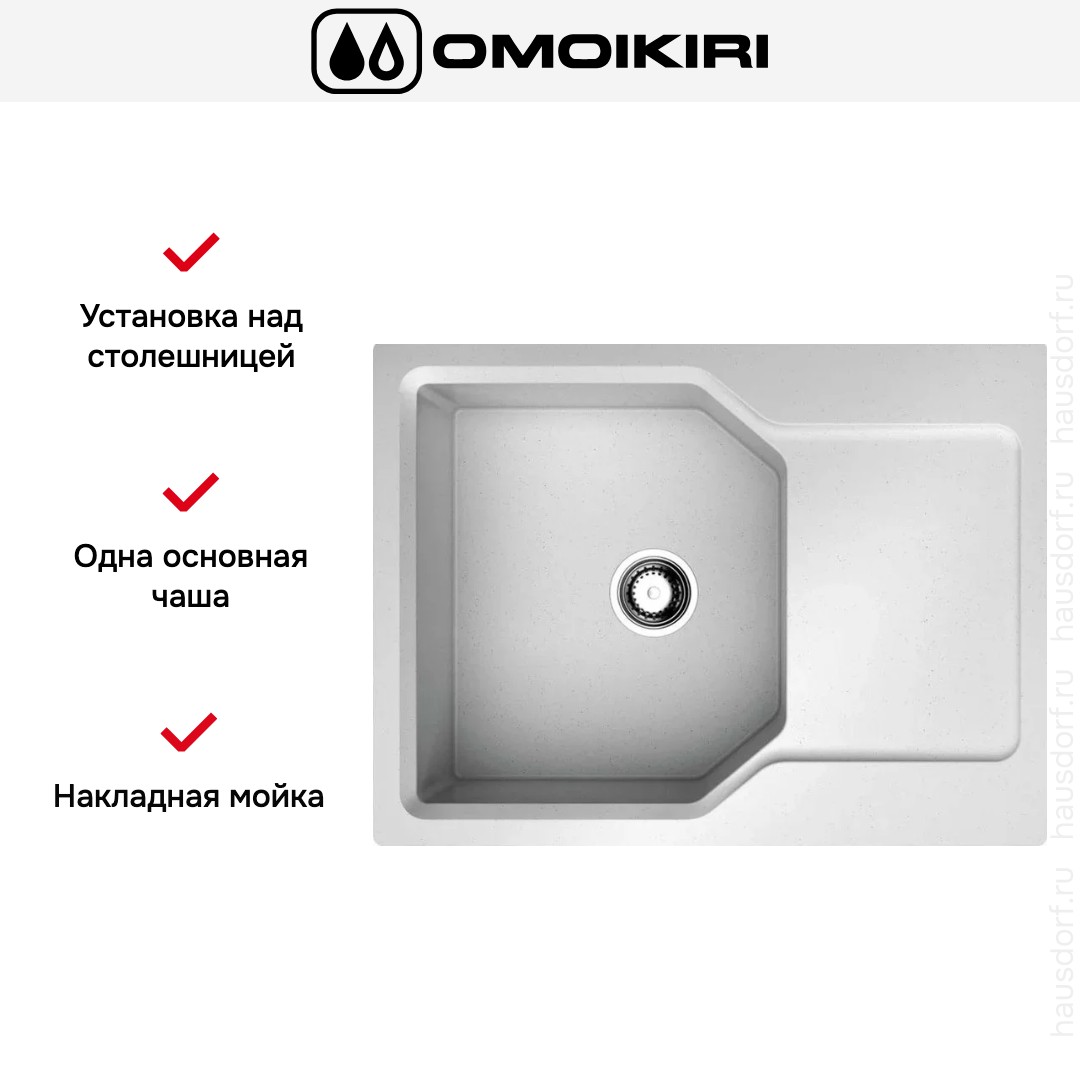 Накладная мойка Omoikiri — отличный выбор для тех, кто хочет создать гармоничное пространство с удобной сантехникой. простой в установке. Преимущество такой конструкции: легко подобрать практически к любой кухне и не придется демонтировать вместе с тумбой при ремонте или перестановке остальной мебели. Данная модель имеет стандартную форму, поэтому подходит большинству пользователей. Устанавливается над столешницей: это самый простой способ монтажа, зачастую с ним можно справиться даже без специалистов, главное — правильно рассчитать размеры ниши.