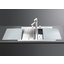 Прямоугольная модель из дизайнерской коллекции Linea устанавливается в базу шириной 90 см. Для защиты мебели предусмотрена установка с бортиком высотой 8 мм. Мойка имеет необорачиваемую конструкцию, предусматривающую единственный вариант установки. Две вместительные чаши отличает большая глубина по вертикали — 24 см. Разделочные доски изготовлены из высококачественного серебристого стекла stopsol. Стильный внешний вид дополняет корзинчатый вентиль и стальная декоративная накладка на сливное отверстие. Клапан-автомат позволяет сливать воду, не погружая руки в раковину.