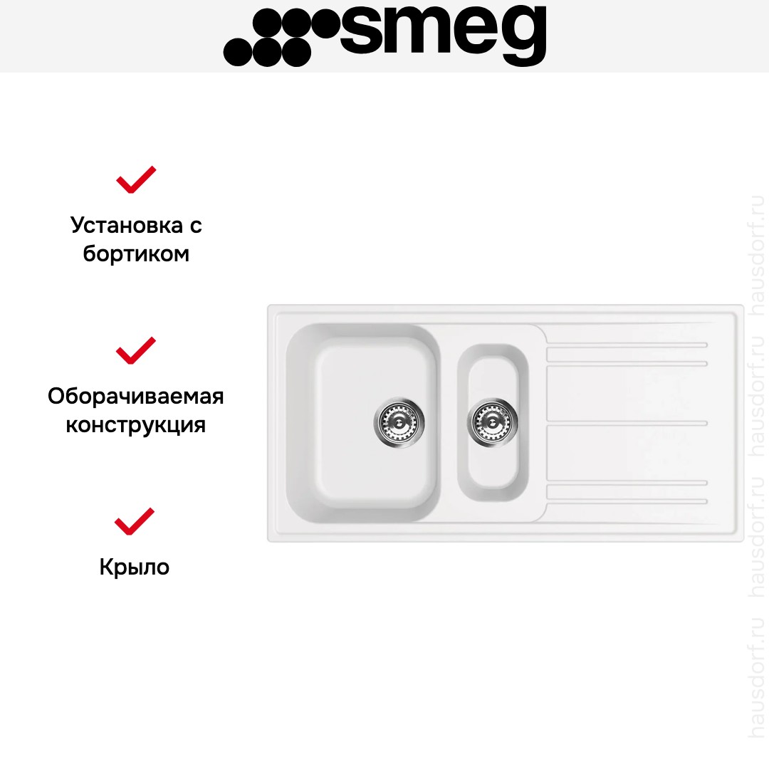 Мойка Smeg LZ102B — вместительная и элегантная накладная модель, разработанная для современных кухонь, где важны функциональность, надёжность и лаконичный дизайн. Её прямоугольная форма и внушительные габариты — 100×50 см — обеспечивают максимальный комфорт при выполнении широкого спектра задач: от мытья крупной посуды и кастрюль до подготовки ингредиентов или разморозки продуктов. Глубина чаши в 50 см эффективно снижает вероятность разбрызгивания воды, сохраняя чистоту и порядок на рабочей поверхности.