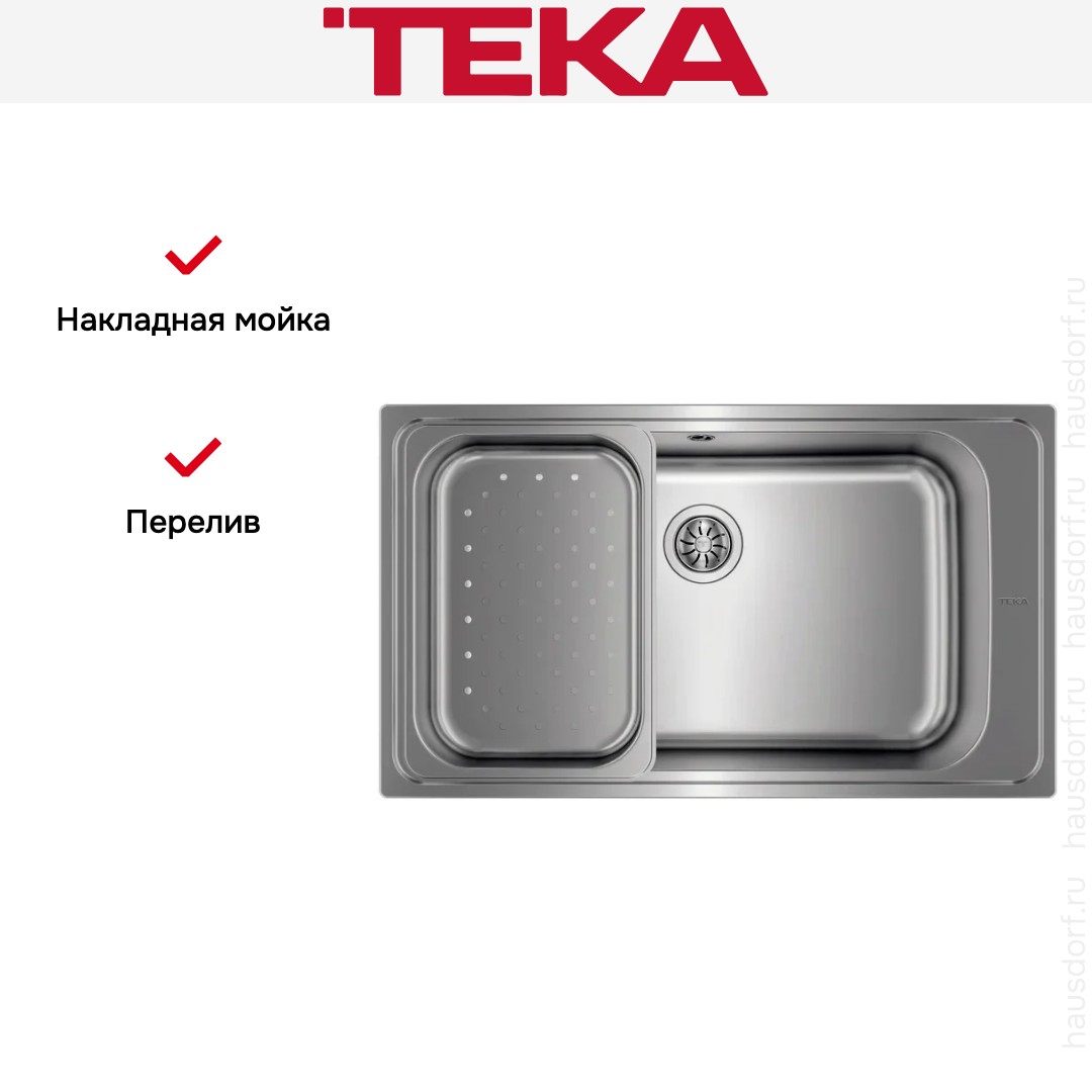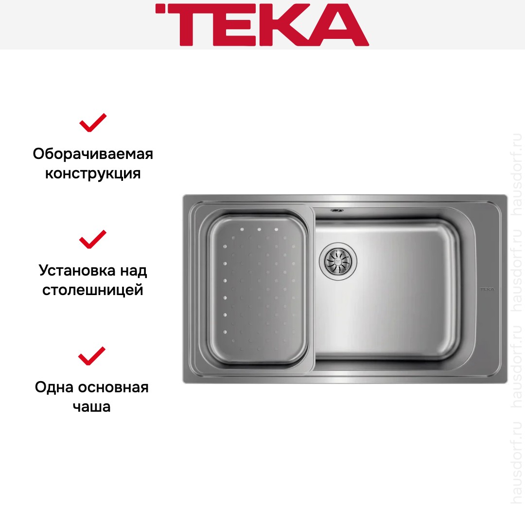 Мойка Teka Bahia 1B PLUS — практичное и эстетичное решение для современной кухни, сочетающее функциональность, прочность и лаконичный дизайн. Эта модель выполнена в виде накладной конструкции, что упрощает её монтаж на тумбу без необходимости сложных врезных работ. Прямоугольная форма чаши обеспечивает максимальное использование полезной площади, позволяя комфортно размещать посуду, овощи или кулинарные принадлежности.