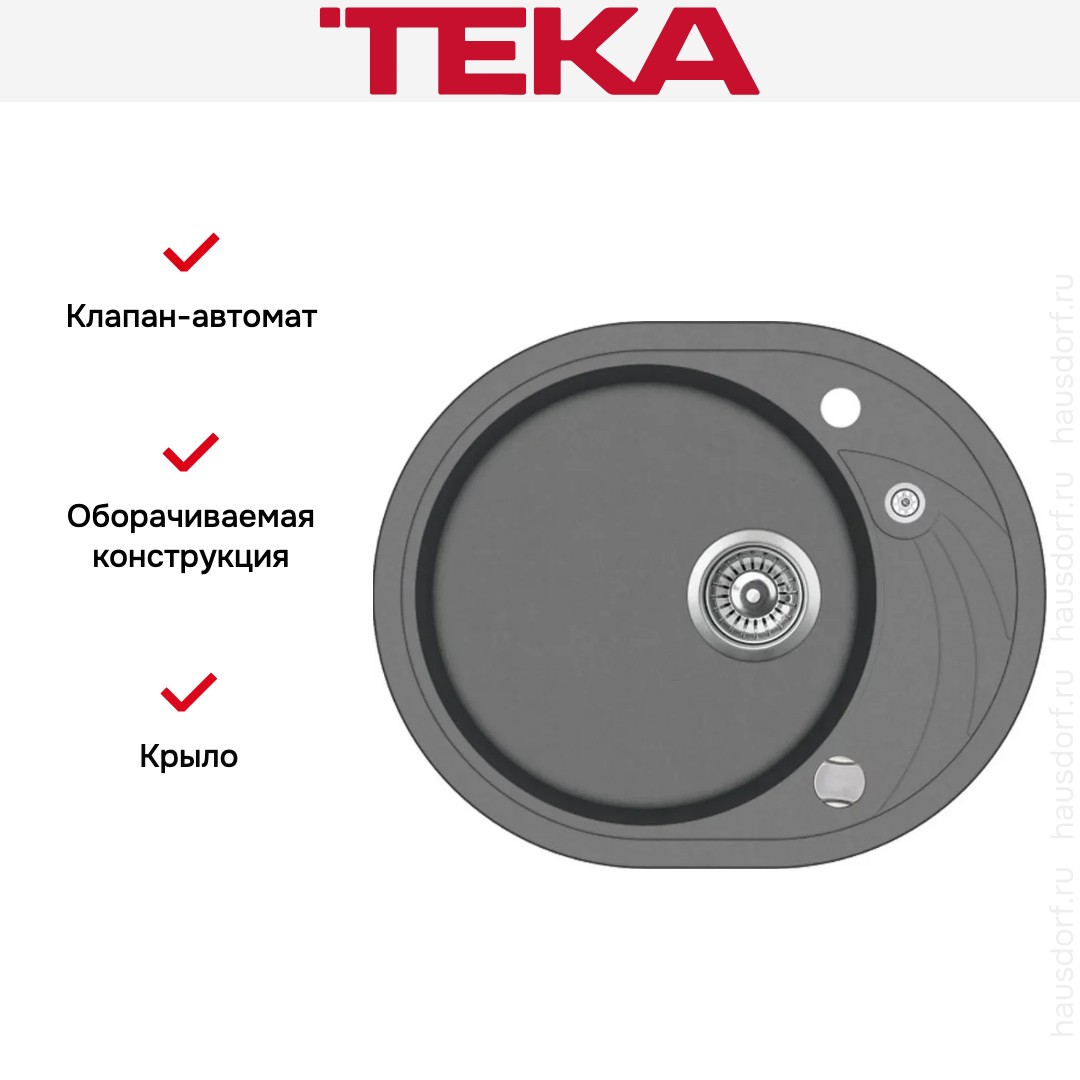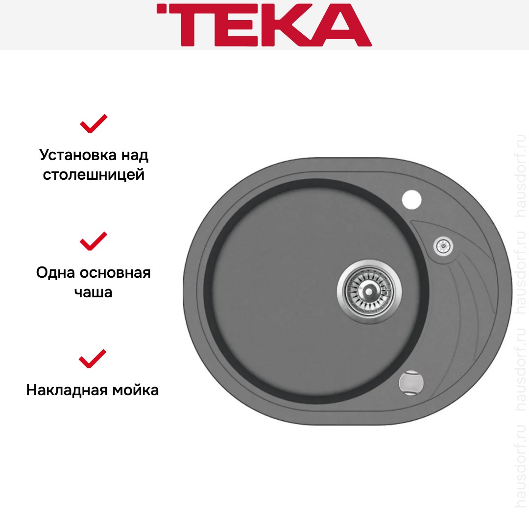 Мойка Teka Clave 45 S TQ-Q Alugraumetallic — стильное решение для компактной кухни, которое сочетает продуманный дизайн и практичную функциональность. Овальная форма чаши мягко вписывается в интерьер и экономит полезное пространство при общей габарите 58×47 см и ширине изделия 58 см при глубине 47 см; способ установки — накладной, крепление предусмотрено для монтажа над столешницей, при этом минимальная ширина базы под шкаф составляет 45 см, что делает модель подходящей для мебельных модулей небольшой ширины. Конструкция оборачиваемая, поэтому возможна установка с крылом как слева, так и справа, что обеспечивает гибкость планировки и удобство при организации рабочего треугольника. В составе одна основная чаша размером 39,5×19 см, вертикальная глубина которой составляет 19 см, что обеспечивает достаточный объем для мытья посуды и минимизирует разбрызгивание воды; наличие крыла расширяет функционал зоны и создает место для сушки. Материал изготовления — тегранит толщиной 10 мм, придающий поверхности характерный серый металлик и эстетичный внешний вид в дизайне Clave; сочетание формы и оттенка легко подстраивается под современные решения кухонных гарнитуров. Для комфортной эксплуатации предусмотрен перелив и две технологические точки под смеситель, что дает свободу выбора моделей смесителей и удобство при установке; диаметр сливного отверстия соответствует стандартному 3 1/2 дюйма, в комплекте поставляется сливная арматура, а также крепежи для надежного закрепления. Дополнительно в комплекте находится клапан-автомат, упрощающий слив воды и обеспечивающий аккуратную работу с канализацией; оформление отверстий и геометрия чаши продуманы так, чтобы обеспечить эффективный сход воды и удобство очистки. Серый металлик поверхности и лаконичные линии делают изделие универсальным элементом, который гармонирует с разными отделками столешниц и фасадов, при этом ровные очертания крыла и плавные границы чаши создают ощущение цельности и солидности. Технические параметры — ширина моечного места 58 см, глубина 47 см, база 45 см, одна основная чаша 39,5×19 см и вертикальная глубина 19 см — позволяют сочетать компактность и эргономику, а оборачиваемая конструкция с возможностью переноса крыла повышает адаптивность при ремонте или замене мебели. Комплектность по артикулу 40148151 включает все необходимые элементы для монтажа и запуска в работу, поэтому изделие сразу готово к использованию после установки; такое сочетание продуманности форм, практических решений и аккуратного оттенка делает модель привлекательной для тех, кто ищет надежное и аккуратное решение для организованной кухни.