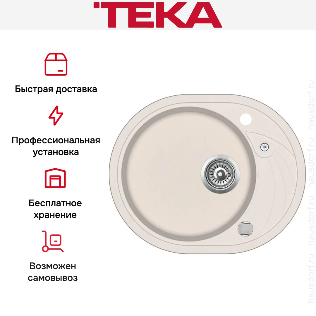 Накладная мойка Teka — отличный выбор для тех, кто хочет создать гармоничное пространство с удобной сантехникой. простой в установке. Преимущество такой конструкции: легко подобрать практически к любой кухне и не придется демонтировать вместе с тумбой при ремонте или перестановке остальной мебели. Данная модель имеет скругленный контур, поэтому выбор тумбочки для нее потребует дополнительного внимания. Устанавливается над столешницей: это самый простой способ монтажа, зачастую с ним можно справиться даже без специалистов, главное — правильно рассчитать размеры ниши.