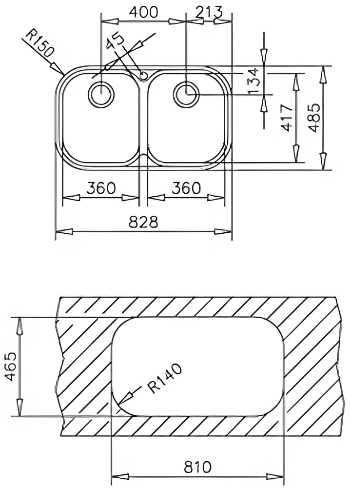 Необорачиваемую мойку можно установить только в одном положении — поэтому при наличии крыла необходимо заранее продумать, как вы хотите ее разместить. Модель имеет одно отверстие для смесителя, может быть разной формы — круглой, квадратной, прямоугольной и нестандартной. Изготавливаются из разных материалов.