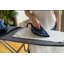 Профессиональный утюг подсоединен к емкости с водой, расположенной в корпусе с подставкой. Вы можете использовать такой утюг как на горизонтальной доске для глажки, так и при обработке вещей на вешалке.