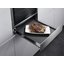Фиксация открытия нажатием во встраиваемых подогревателях для посуды позволяет достичь сразу двух целей. Прежде всего дверца, которая открывается нажатием на ее верхнюю часть, не нуждается в ручке, что способствует сохранению единого стиля интерьера. Кроме того, такие фасады можно размещать вплотную друг к другу, так что образуется сплошная поверхность, которая эффектно выглядит. Для открытия ящика необходимо не просто нажать, но зафиксировать ящик в нажатом состоянии на несколько секунд. Это мера безопасности, благодаря которой ребенок не сможет открыть подогреватель даже случайно.