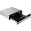 Подогреватель открывается нажатием на фронтальную панель — ящик выезжает на несколько сантиметров, полностью открыть камеру можно, потянув его до упора. Такой способ распространен в современной технике, благодаря этому вы можете собрать комплект из кухонных приборов без выпирающих ручек и создать «бесшовный» интерьер.