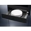 Подогреватель открывается нажатием на фронтальную панель — ящик выезжает на несколько сантиметров, полностью открыть камеру можно, потянув его до упора. Такой способ распространен в современной технике, благодаря этому вы можете собрать комплект из кухонных приборов без выпирающих ручек и создать «бесшовный» интерьер.
