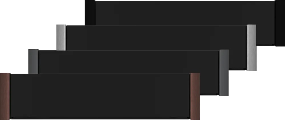 Цвет фронтальной части подогревателей посуды обычно выбирается, чтобы прибор не бросался в глаза и воспринимался как часть мебельной колонны или тумбы. Большинство производителей предлагает модели в универсальных оттенках, среди которых преобладает черный, зачастую с деталями из нержавеющей стали. На втором месте по популярности — стальной и серебристый цвета, которые хорошо сочетаются с современным минималистичным дизайном: так, швейцарский бренд V-ZUG предлагает модели цвета «платиновое стекло». Белый, бежевый и серый цвета, также хорошо сочетающиеся с любым стилем интерьера, но более маркие, представлены менее широко. Любители необычных расцветок могут выбрать модели Viking синего цвета, Bertazzoni оттенка «черный декор» или Teka с накладными фасадами тонов Night River Black, London Brock Brown, Stone Grey.
