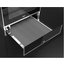 Подогреватель открывается нажатием на фронтальную панель — ящик выезжает на несколько сантиметров, полностью открыть камеру можно, потянув его до упора. Такой способ распространен в современной технике, благодаря этому вы можете собрать комплект из кухонных приборов без выпирающих ручек и создать «бесшовный» интерьер.