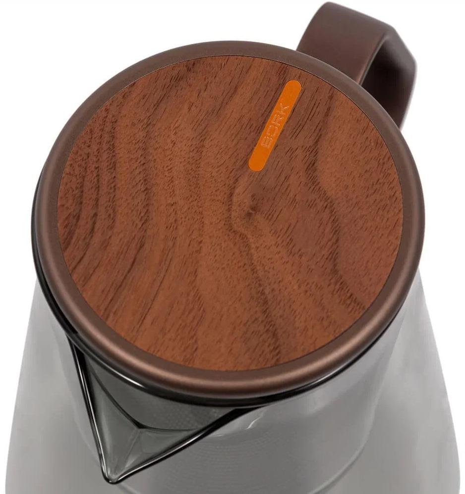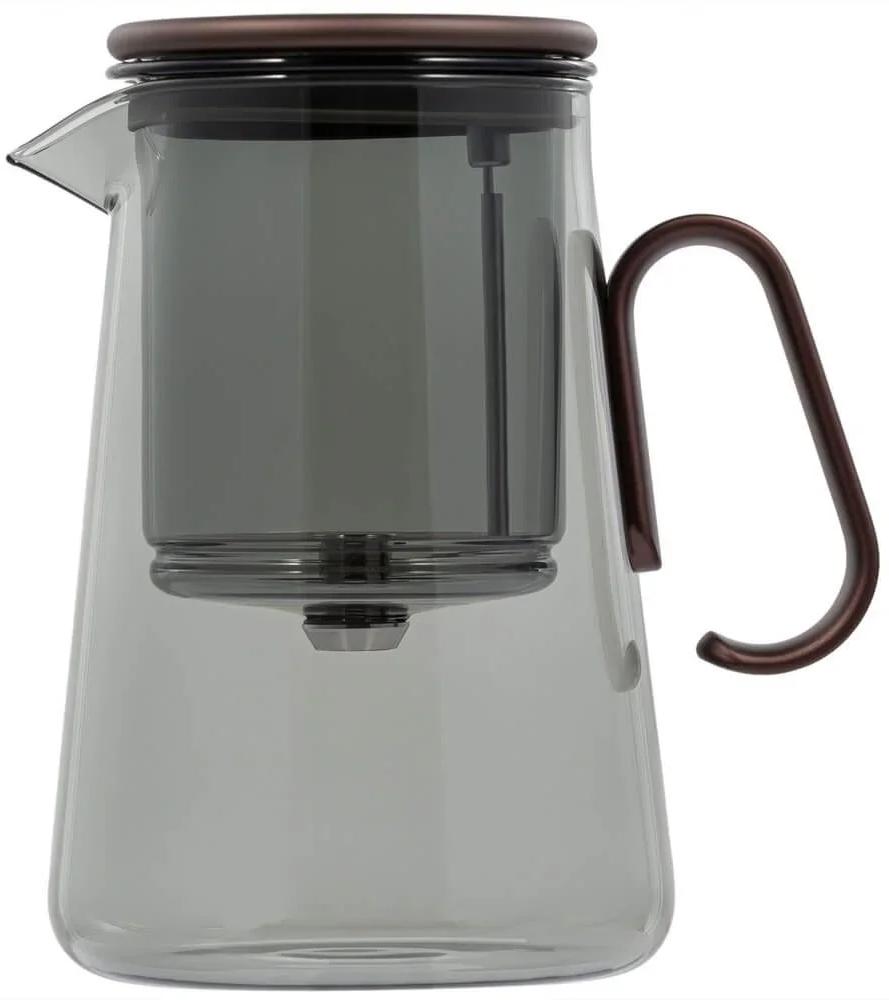 Каждая деталь подобрана для воплощения эстетичной чайной церемонии: тонированное стекло, ручка из тактильно приятного алюминия и крышка, отделанная натуральным шпоном американского ореха с уникальным рисунком.
