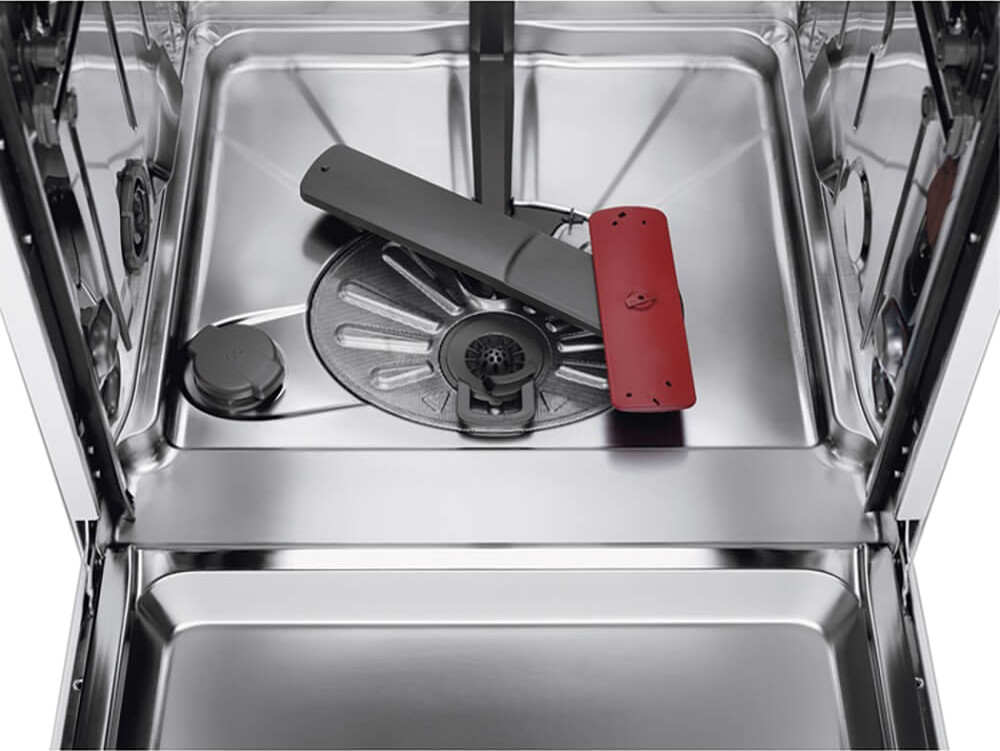 Система ополаскивания и автоматической промывки фильтров, которая предотвращает засоры. Благодаря этому засохшие загрязнения или не убранные перед мойкой кусочки пищи не забивают слив.