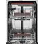 Стандартная комплектация предполагает использование двух разбрызгивателей, фильтров, дозаторов для ополаскивателя и моющего средства, двух корзин для посуды и выдвижного ящика для столовых приборов.