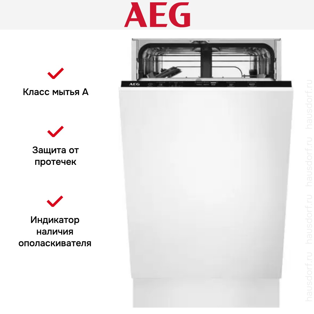 Встраиваемая модель АЕГ отлично впишется в любой интерьер, главное — правильно выбрать место, чтобы подвести коммуникации. Устанавливается в нишу целиком, полностью закрывается декоративной панелью. Обратите внимание: в комплекте не идет фасад, его необходимо установить самостоятельно. Имеет уменьшенную ширину — благодаря этому поместится даже на очень маленькой кухне. В камеру можно загрузить ограниченное число комплектов: 9 шт. Комплектом считается набор посуды на одного человека, который нужен для полноценного приема пищи: глубокая и плоская тарелки, тарелка для салата, блюдце под чашку, сама чашка, ложка и вилка.