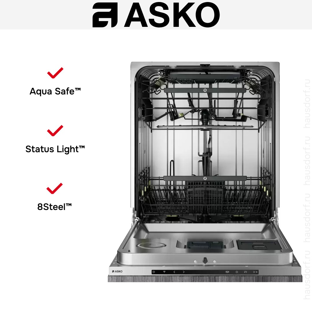 Посудомоечная машина ASKO DFI747U-1 создана для полной интеграции в кухонный гарнитур и смотрится единым целым с фасадами. Корпус рассчитан на нишу 82×60×56 см и имеет высоту с регулировкой от 81,9 до 87,2 см, что облегчает точную подгонку под мебель. Передняя панель скрытая, из нержавеющей стали, и поддерживает стильный минимализм, а механизм Push‑to‑Open/Knock‑to‑Open добавляет удобства при открывании. Встроенная автоматическая приоткрывающаяся дверца в конце цикла улучшает сушку и снижает влажность в камере, сохраняя целостность фасада.