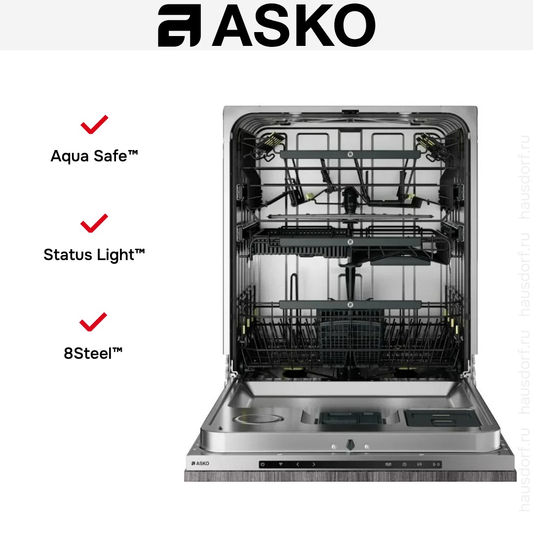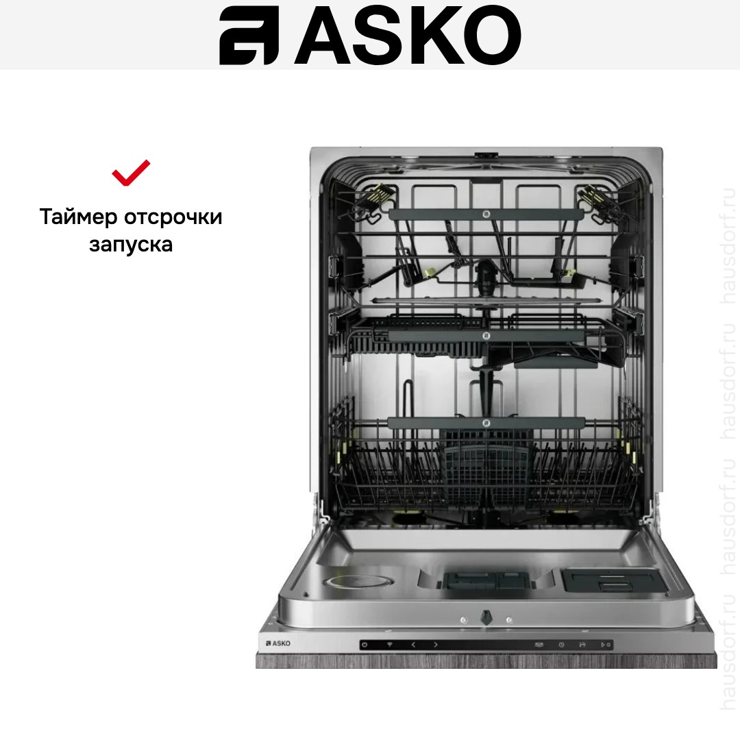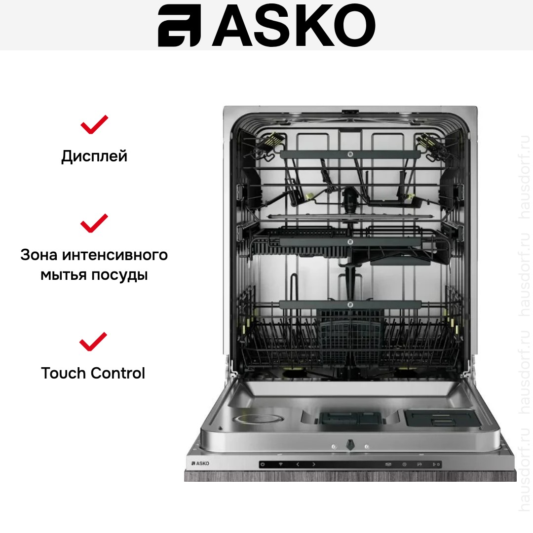 Посудомоечная машина ASKO DFI748MU. Встраиваемое решение полностью скрытого типа объединяет строгую эстетику и техническую изящность, оставляя переднюю панель под ваш кухонный фасад. Панель управления из нержавеющей стали аккуратно закрыта, а цвет корпуса легко подстраивается под навесной фасад. Тонкий TFT‑дисплей с сенсорным управлением делает интерфейс понятным и аккуратным, а функция Push‑to‑Open и автоматическое приоткрывание дверцы по окончании цикла добавляют удобства при эксплуатации. Габариты и требуемая ниша указаны точно, что упрощает монтаж и интеграцию в стандартные кухонные модули.