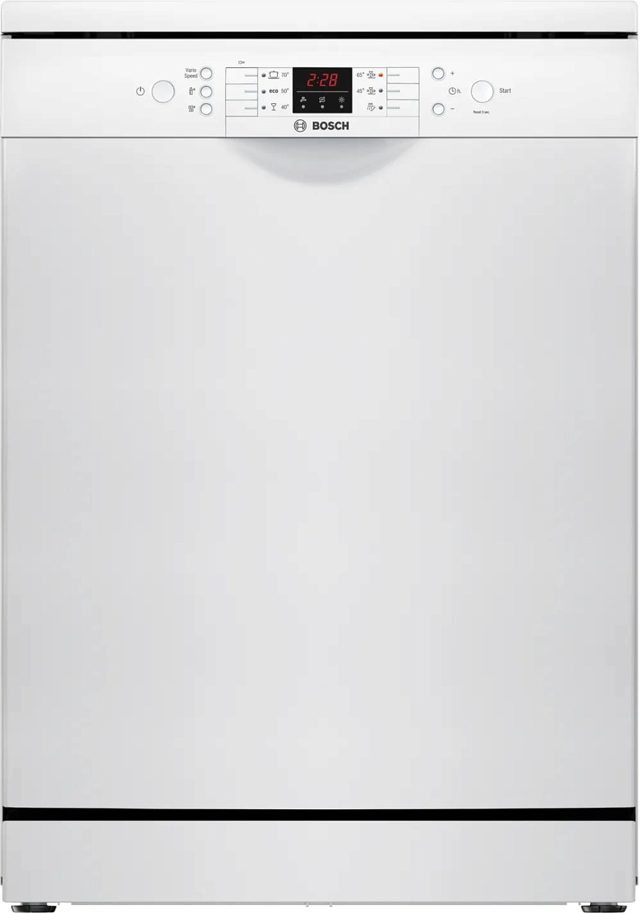Посудомоечная машина Bosch SMS26DW00T — практичная и вместительная модель. Это полноразмерная отдельностоящая техника шириной 60 см. Габариты 84.5×60×60 см легко впишутся в стандартную нишу на кухне. Белый корпус и панель управления поддержат светлую гамму интерьера. Электронное управление с цифровым дисплеем упрощает доступ к регулировке параметров. Вместимость 13 комплектов подходит и на каждый день, и на праздники. Уровень шума 48 дБ позволяет запускать технику даже ночью без дискомфорта.