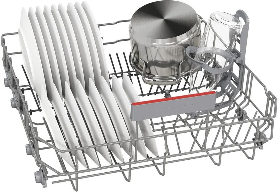 Отдельностоящая модель Бош отлично впишется в кухонный интерьер, главное — правильно выбрать место, чтобы подвести коммуникации. Имеет стандартные размеры, поэтому может не поместиться на очень маленькой кухне. В камеру можно загрузить ограниченное число комплектов: 14 шт. Комплектом считается набор посуды на одного человека, который нужен для полноценного приема пищи: глубокая и плоская тарелки, тарелка для салата, блюдце под чашку, сама чашка, ложка и вилка.