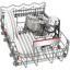 Встраиваемая модель Бош отлично впишется в любой интерьер, главное — правильно выбрать место, чтобы подвести коммуникации. Устанавливается в нишу целиком, полностью закрывается декоративной панелью. Обратите внимание: в комплекте не идет фасад, его необходимо установить самостоятельно. Имеет уменьшенную ширину — благодаря этому поместится даже на очень маленькой кухне. В камеру можно загрузить ограниченное число комплектов: 10 шт. Комплектом считается набор посуды на одного человека, который нужен для полноценного приема пищи: глубокая и плоская тарелки, тарелка для салата, блюдце под чашку, сама чашка, ложка и вилка.
