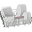 Направляющие для тарелок в корзинах посудомоечных машин позволяют разместить фаянсовую, фарфоровую, стеклянную посуду максимально безопасно и обеспечить ее лучшую очистку. Тарелки и блюдца разного размера могут размещаться как в верхней, так и в нижней корзине. В нижней части верхней корзины, как правило, имеются волнообразные или полукруглые выступы для установки небольших тарелок, мисок и блюдец. Специалисты рекомендуют устанавливать посуду в передней части корзины углублением назад, а тарелки в задней части корзины — углублением вперед, чтобы струи воды могли очистить их более эффективно.