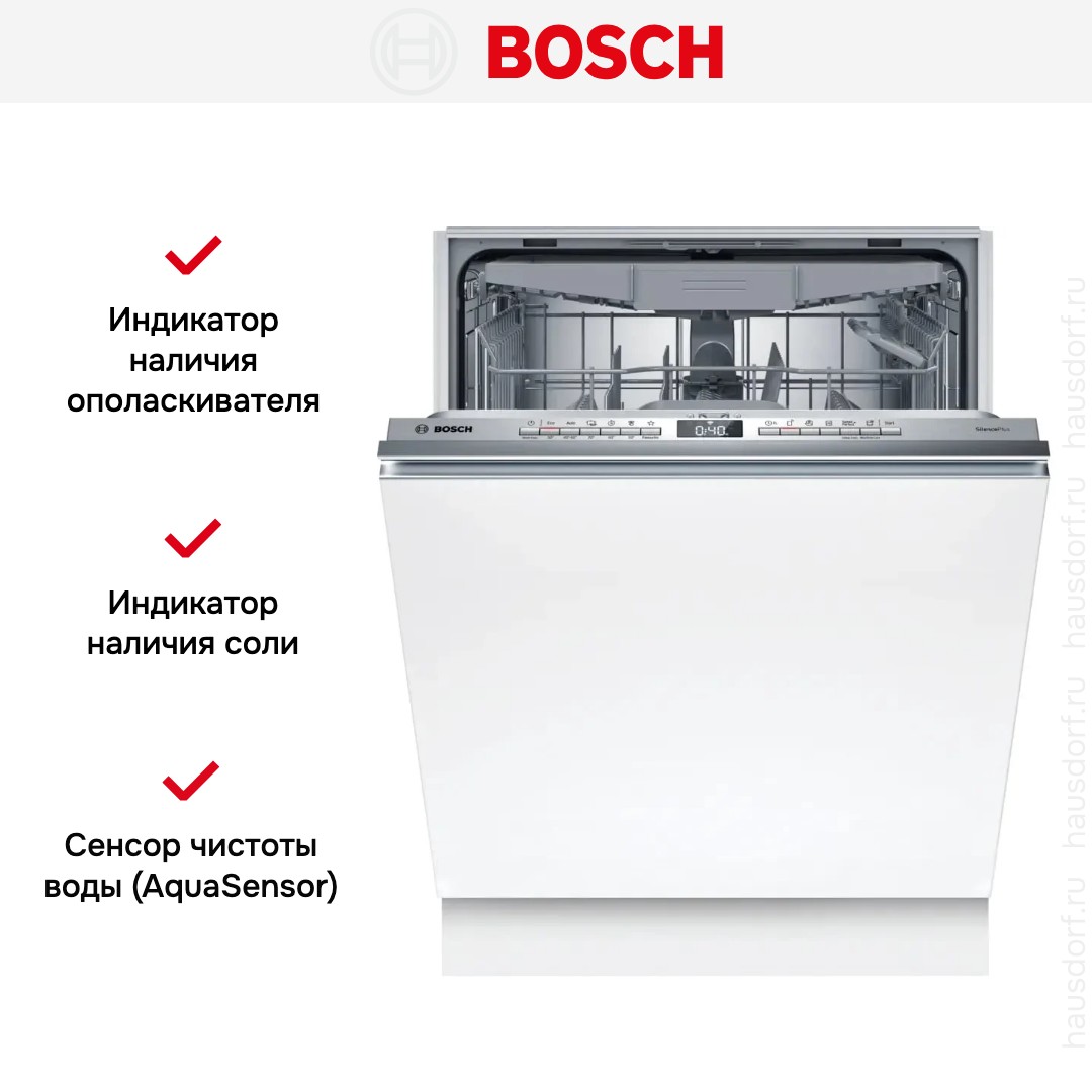 Встраиваемая модель Бош отлично впишется в любой интерьер, главное — правильно выбрать место, чтобы подвести коммуникации. Устанавливается в нишу целиком, полностью закрывается декоративной панелью. Обратите внимание: в комплекте не идет фасад, его необходимо установить самостоятельно. Имеет стандартные размеры, поэтому может не поместиться на очень маленькой кухне. В камеру можно загрузить ограниченное число комплектов: 14 шт. Комплектом считается набор посуды на одного человека, который нужен для полноценного приема пищи: глубокая и плоская тарелки, тарелка для салата, блюдце под чашку, сама чашка, ложка и вилка.