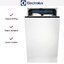 Встраиваемая модель Электролюкс отлично впишется в любой интерьер, главное — правильно выбрать место, чтобы подвести коммуникации. Устанавливается в нишу целиком, полностью закрывается декоративной панелью. Обратите внимание: в комплекте не идет фасад, его необходимо установить самостоятельно. Имеет уменьшенную ширину — благодаря этому поместится даже на очень маленькой кухне. В камеру можно загрузить ограниченное число комплектов: 10 шт. Комплектом считается набор посуды на одного человека, который нужен для полноценного приема пищи: глубокая и плоская тарелки, тарелка для салата, блюдце под чашку, сама чашка, ложка и вилка.