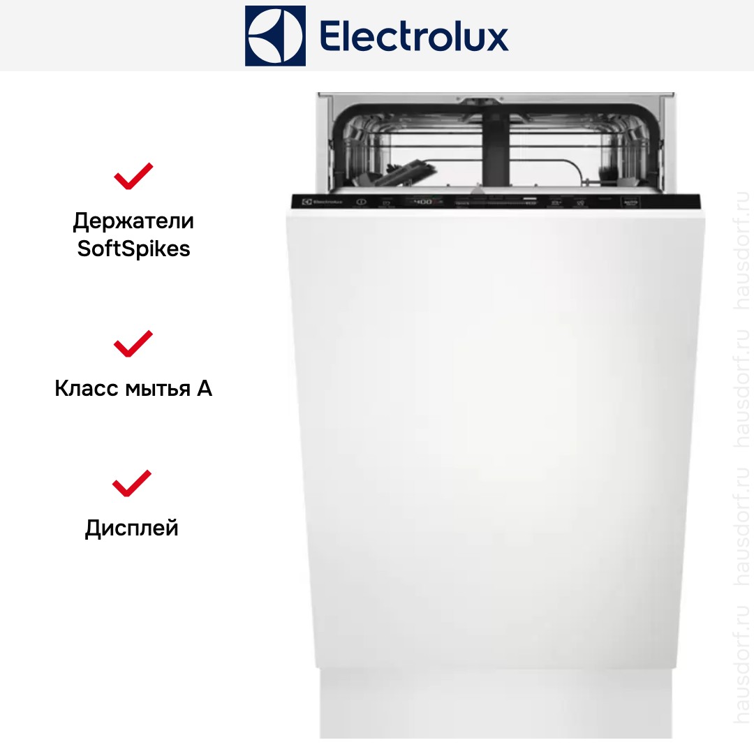 Встраиваемая посудомоечная машина Electrolux KESC2210L спроектирована для полного скрытого монтажа под фасад вашей кухни и сохраняет аккуратный и минималистичный внешний вид. Аппарат узкого формата легко помещается в нишу шириной 45 см и при высоте 81.8 см отлично вписывается в стандартную кухонную мебель. Черная закрытая панель управления остается невидимой при закрытой дверце, что делает фасад монолитным и стильным.