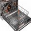 Управление осуществляется через скрытую электронную панель с чёрным оформлением и цифровым дисплеем, на котором отображается статус цикла и доступные функции. Сенсорный интерфейс интуитивно понятен, а наличие таймера отсрочки запуска позволяет запрограммировать начало мойки на удобное время — например, на ночь или к моменту возвращения домой. Внутренняя подсветка упрощает загрузку даже при слабом освещении. Эта модель сочетает в себе практичность, вместительность и современный подход к автоматизации бытовых задач.
