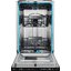 Встраиваемая модель Хайер отлично впишется в любой интерьер, главное — правильно выбрать место, чтобы подвести коммуникации. Устанавливается в нишу целиком, полностью закрывается декоративной панелью. Обратите внимание: в комплекте не идет фасад, его необходимо установить самостоятельно. Имеет уменьшенную ширину — благодаря этому поместится даже на очень маленькой кухне. В камеру можно загрузить ограниченное число комплектов: 11 шт. Комплектом считается набор посуды на одного человека, который нужен для полноценного приема пищи: глубокая и плоская тарелки, тарелка для салата, блюдце под чашку, сама чашка, ложка и вилка.