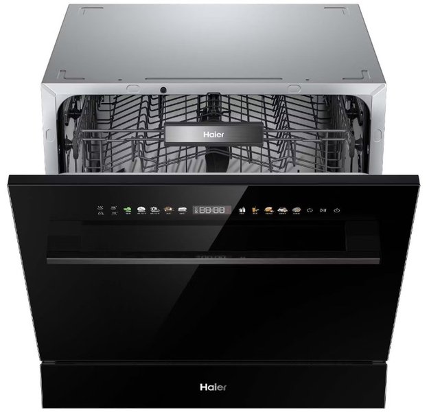 Устанавливается в нишу неполностью, остается открытой панель управления. Имеет стандартные размеры, поэтому может не поместиться на очень маленькой кухне. В камеру можно загрузить ограниченное число комплектов: 8 шт. Комплектом считается набор посуды на одного человека, который нужен для полноценного приема пищи: глубокая и плоская тарелки, тарелка для салата, блюдце под чашку, сама чашка, ложка и вилка.