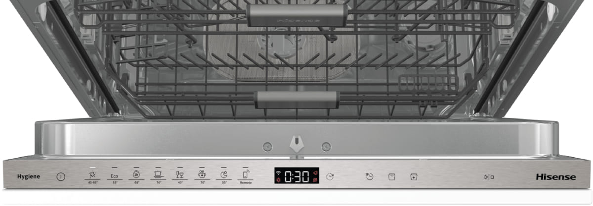 Встраиваемая модель Хайсенс отлично впишется в любой интерьер, главное — правильно выбрать место, чтобы подвести коммуникации. Устанавливается в нишу целиком, полностью закрывается декоративной панелью. Обратите внимание: в комплекте не идет фасад, его необходимо установить самостоятельно. Имеет стандартные размеры, поэтому может не поместиться на очень маленькой кухне. В камеру можно загрузить ограниченное число комплектов: 16 шт. Комплектом считается набор посуды на одного человека, который нужен для полноценного приема пищи: глубокая и плоская тарелки, тарелка для салата, блюдце под чашку, сама чашка, ложка и вилка.