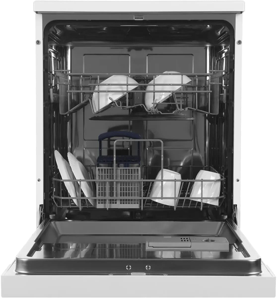 Отдельностоящая модель Хендай отлично впишется в кухонный интерьер, главное — правильно выбрать место, чтобы подвести коммуникации. Имеет стандартные размеры, поэтому может не поместиться на очень маленькой кухне. В камеру можно загрузить ограниченное число комплектов: 12 шт. Комплектом считается набор посуды на одного человека, который нужен для полноценного приема пищи: глубокая и плоская тарелки, тарелка для салата, блюдце под чашку, сама чашка, ложка и вилка.