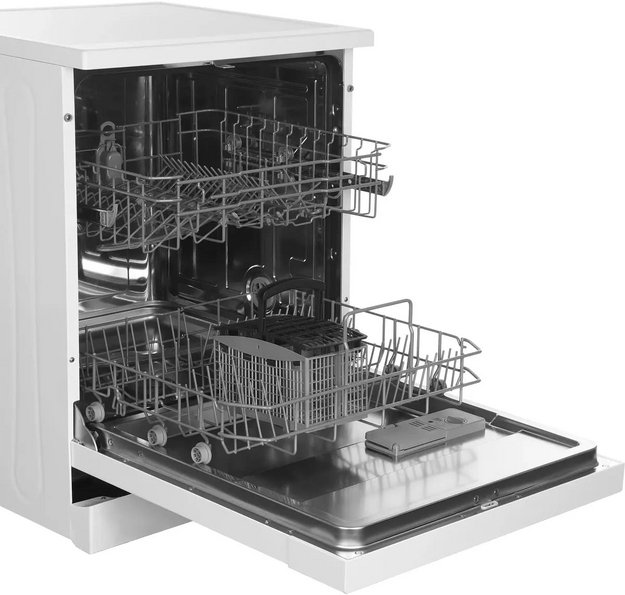Полноразмерные модели выбирают в больших семьях, а также те, кто много готовит или часто принимает гостей. Их вместимость может составить до 15 комплектов посуды, а габаритные размеры соответствуют размерам стандартной кухонной мебели шириной и глубиной 60 см и высотой 82-85 см. Они выпускаются как во встраиваемом, так и в отдельностоящем варианте: во втором случае для установки понадобится достаточно много места. Как правило, полноразмерные приборы отличаются большим набором стандартных и специальных программ мойки, а также дополнительных опций: в частности, они оснащаются третьей корзиной для мытья столовых приборов.