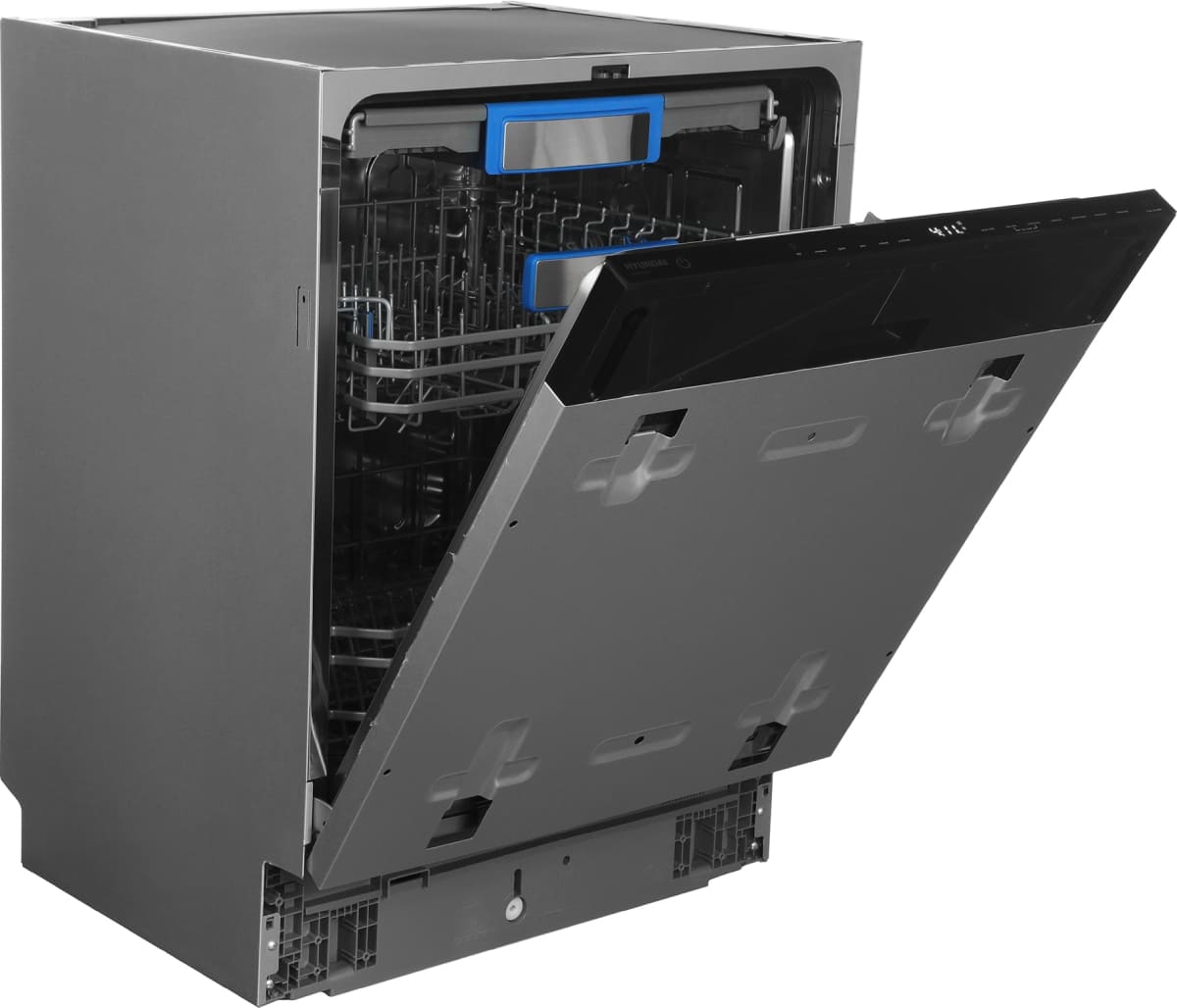Цвет панели управления посудомоечной машины во многом зависит от типа устройства и расположения управляющих элементов. В большинстве современных посудомоек используется кнопочное либо сенсорное управление. В отдельностоящих и настольных моделях панель управления может быть открытой и располагаться на фронтальной части прибора, что облегчает установку параметров работы и контроль за выполнением программы. Во встраиваемых моделях с возможностью навески декоративного мебельного фасада панель управления чаще всего размещается на верхней кромке дверцы.