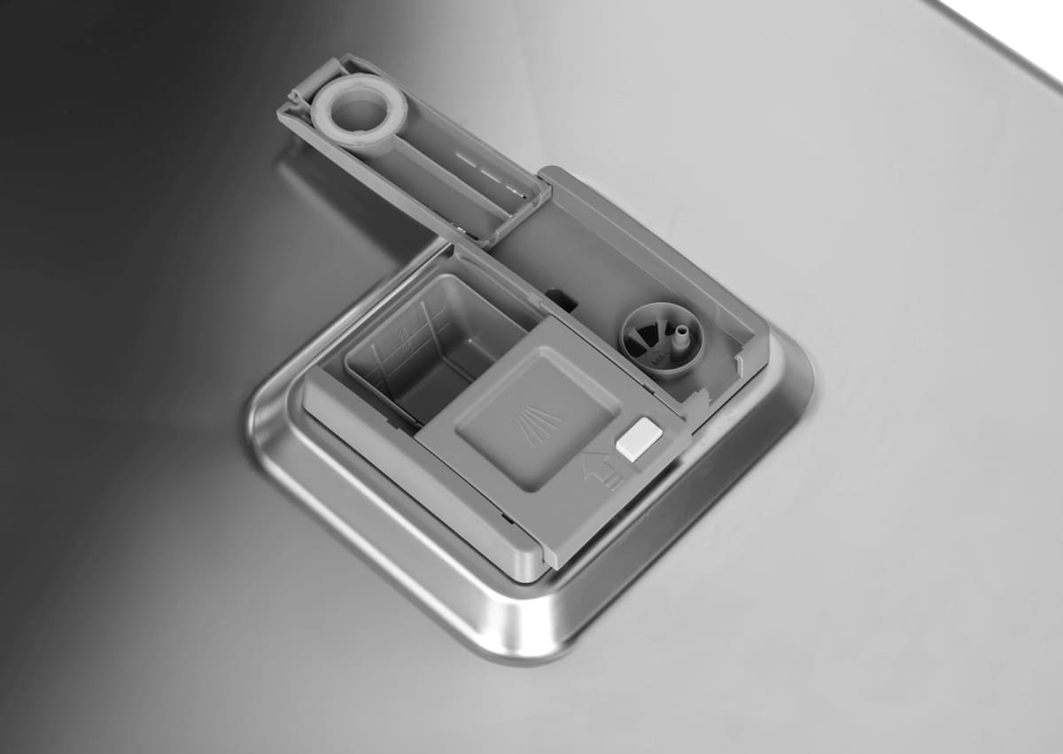 Чтобы смягчить водопроводную воду, в посудомоечных машинах устанавливается резервуар, куда загружается специальная соль. Перед первым использованием посудомойки необходимо выяснить уровень жесткости воды и отрегулировать систему смягчения. По умолчанию в машинах устанавливается средний уровень жесткости. Узнать уровень жесткости в той или иной местности можно при помощи специальных приборов или тест-полосок. Также эти сведения можно получить в соответствующей организации.