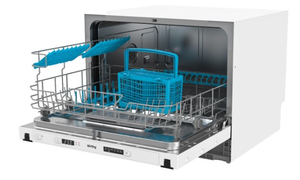 Встраиваемая модель Кертинг отлично впишется в любой интерьер, главное — правильно выбрать место, чтобы подвести коммуникации. Устанавливается в нишу целиком, полностью закрывается декоративной панелью. Обратите внимание: в комплекте не идет фасад, его необходимо установить самостоятельно. Компактные размеры позволяют разместить ее даже на очень маленькой кухне. В камеру можно загрузить ограниченное число комплектов: 6 шт. Комплектом считается набор посуды на одного человека, который нужен для полноценного приема пищи: глубокая и плоская тарелки, тарелка для салата, блюдце под чашку, сама чашка, ложка и вилка.