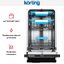 В большинстве современных посудомоек используется внутренняя светодиодная подсветка, что обусловлено целым рядом факторов. Светодиодные лампы отличаются долговечностью и не нуждаются в замене или дополнительном обслуживании. Одной лампы может хватить на весь срок эксплуатации устройства. Еще одно их преимущество — очень низкое потребление электроэнергии. Яркость светодиодных светильников такова, что при извлечении посуды не понадобится лишний раз включат верхнее освещение.