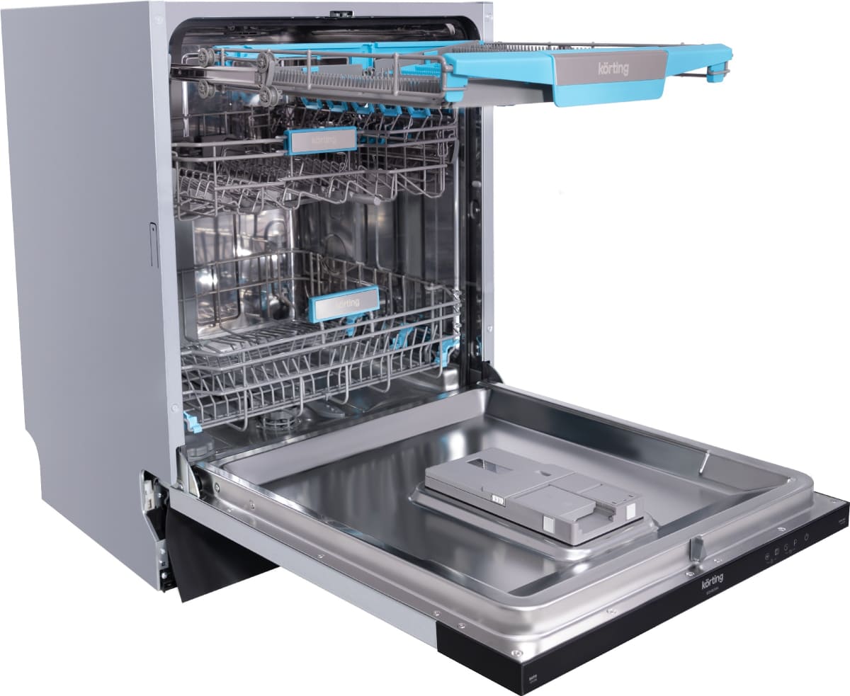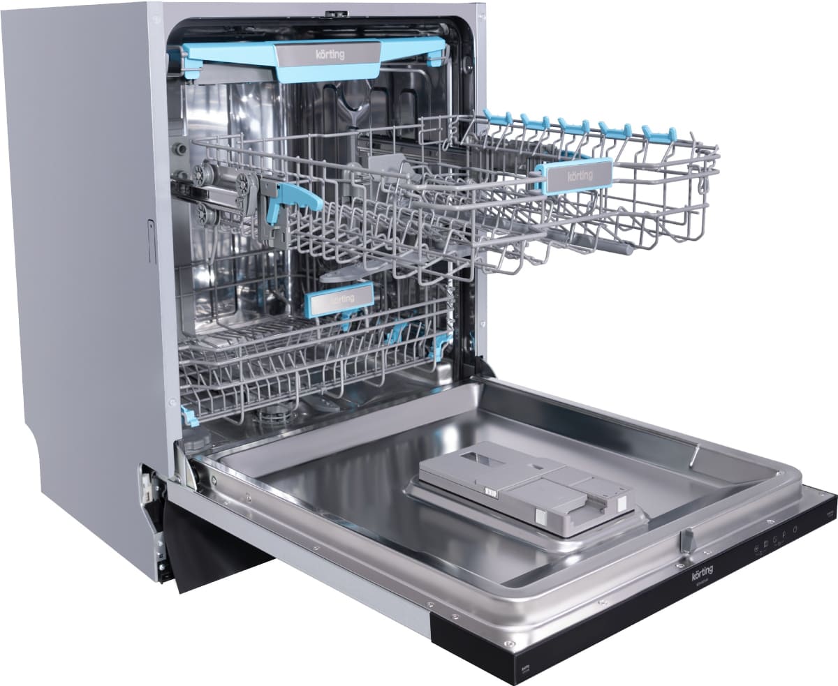 Встраиваемая модель Кертинг отлично впишется в любой интерьер, главное — правильно выбрать место, чтобы подвести коммуникации. Устанавливается в нишу целиком, полностью закрывается декоративной панелью. Обратите внимание: в комплекте не идет фасад, его необходимо установить самостоятельно. Имеет стандартные размеры, поэтому может не поместиться на очень маленькой кухне. В камеру можно загрузить ограниченное число комплектов: 14 шт. Комплектом считается набор посуды на одного человека, который нужен для полноценного приема пищи: глубокая и плоская тарелки, тарелка для салата, блюдце под чашку, сама чашка, ложка и вилка.