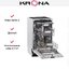 Посудомоечная машина Krona Lumera 45 BI — встраиваемая компактная модель для тех, кто ценит аккуратный интерьер и грамотное использование пространства. Она полностью прячется под фасадом, поэтому вид кухни остается единым и спокойным. Панель управления расположена за закрытой дверцей и выполнена из нержавеющей стали, что повышает срок службы и делает интерфейс устойчивым к повреждениям.