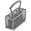 Корзина для столовых приборов — один из обязательных аксессуаров, которыми оснащается любая посудомоечная машина. Она представляет собой сетчатый пластиковый органайзер, в котором устанавливаются в вертикальном положении ложки, ножи и вилки. Корзина, как правило, разделяется на отдельные отсеки, в каждый из которых можно поместить один или несколько предметов. Зачастую сверху она закрывается специальной крышкой, которая также служит для разделения приборов, способствуя более тщательному их мытью.