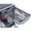 На панели управления расположены индикаторы наличия ополаскивателя и соли, которые помогут вам вовремя пополнить их запас, чтобы обеспечить наилучший результат мойки. Внутренняя камера из нержавеющей стали обеспечивает долговечность и надежность использования, а также легкость в уходе. Машина обладает полкой для столовых приборов, что делает процесс загрузки и выгрузки посуды более удобным и организованным. Расход воды на цикл составляет всего 8 литров, а энергопотребление за цикл — 0.74 кВт, что делает эту модель экономичной в использовании.