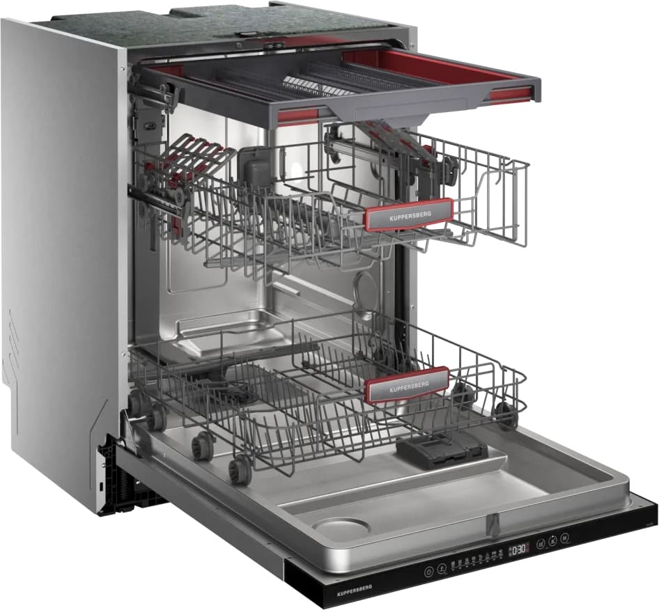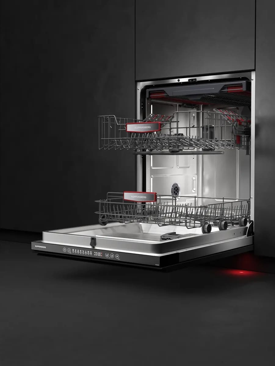 Встраиваемая модель Куперсберг отлично впишется в любой интерьер, главное — правильно выбрать место, чтобы подвести коммуникации. Устанавливается в нишу целиком, полностью закрывается декоративной панелью. Обратите внимание: в комплекте не идет фасад, его необходимо установить самостоятельно. Имеет стандартные размеры, поэтому может не поместиться на очень маленькой кухне. В камеру можно загрузить ограниченное число комплектов: 16 шт. Комплектом считается набор посуды на одного человека, который нужен для полноценного приема пищи: глубокая и плоская тарелки, тарелка для салата, блюдце под чашку, сама чашка, ложка и вилка.